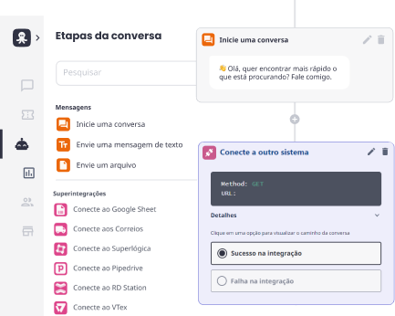 O Octa Conversas é nossa plataforma de chat-commerce que centraliza todo o atendimento da sua empresa. Com ele, você conecta WhatsApp (API Oficial), Instagram Direct, Facebook Messenger e Chat no Site em uma única tela. Isso permite gerenciar todas as interações num só lugar, sem precisar ficar trocando de aplicativo ou aparelho.