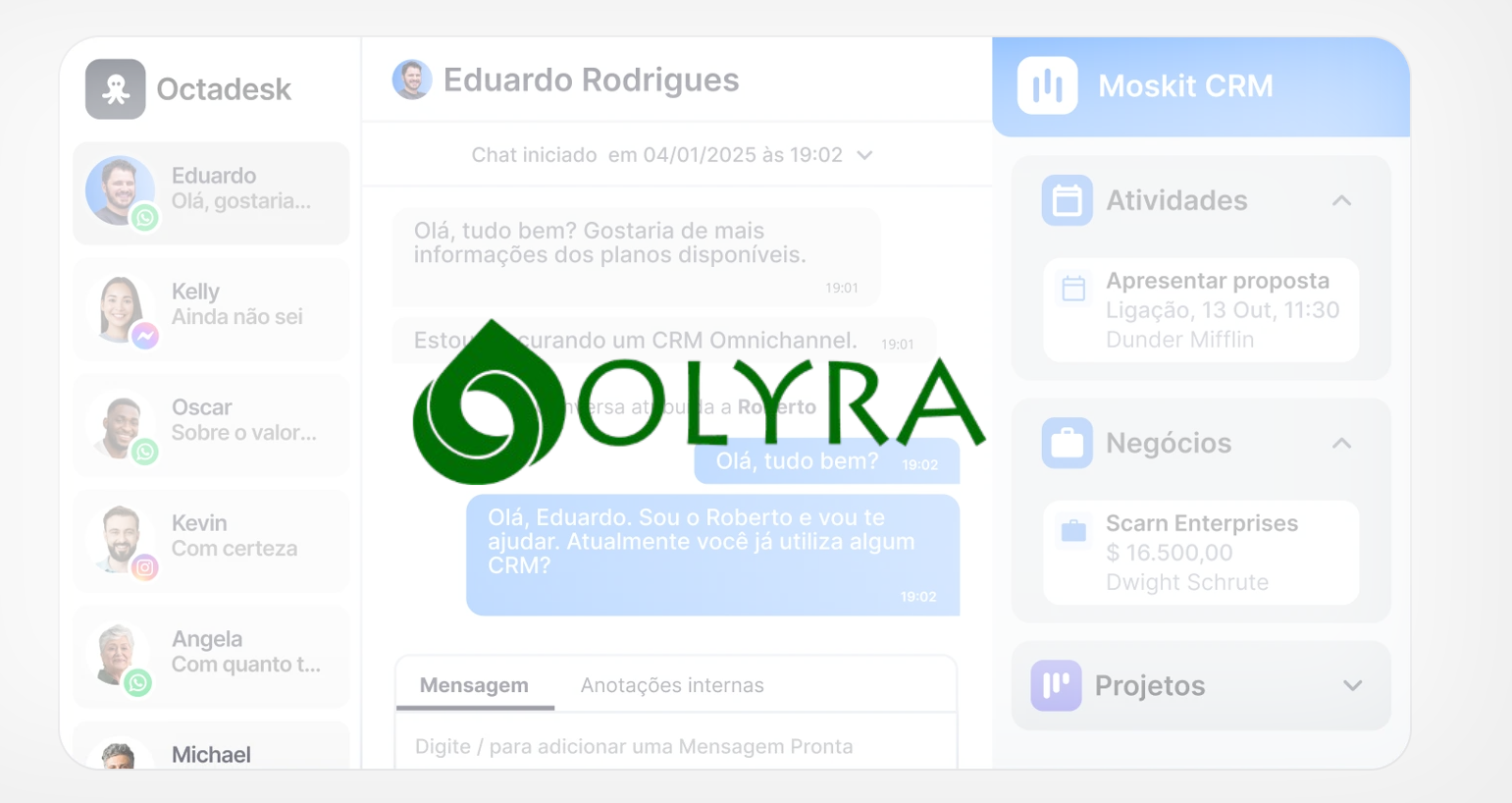Olyra Marketing Olfativo: atendimento ágil, vendas mais eficazes e clientes mais felizes com a Moskit CRM e a Octadesk
