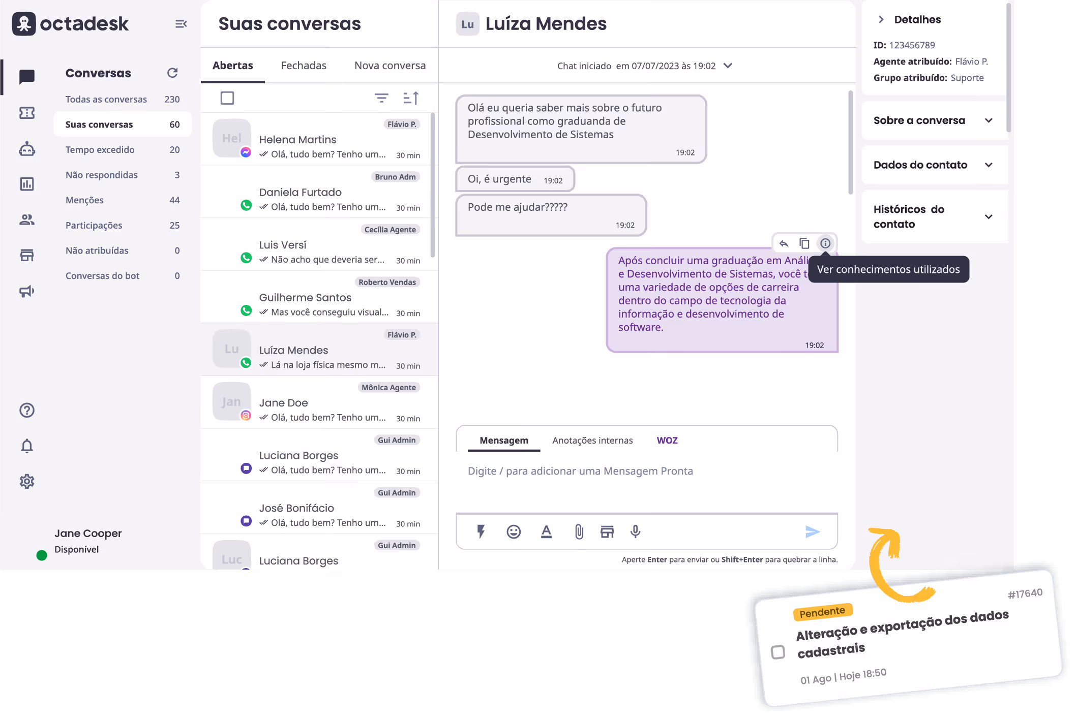 Elimine tarefas repetitivas e personalize as jornadas de conversas com a IA da Octadesk