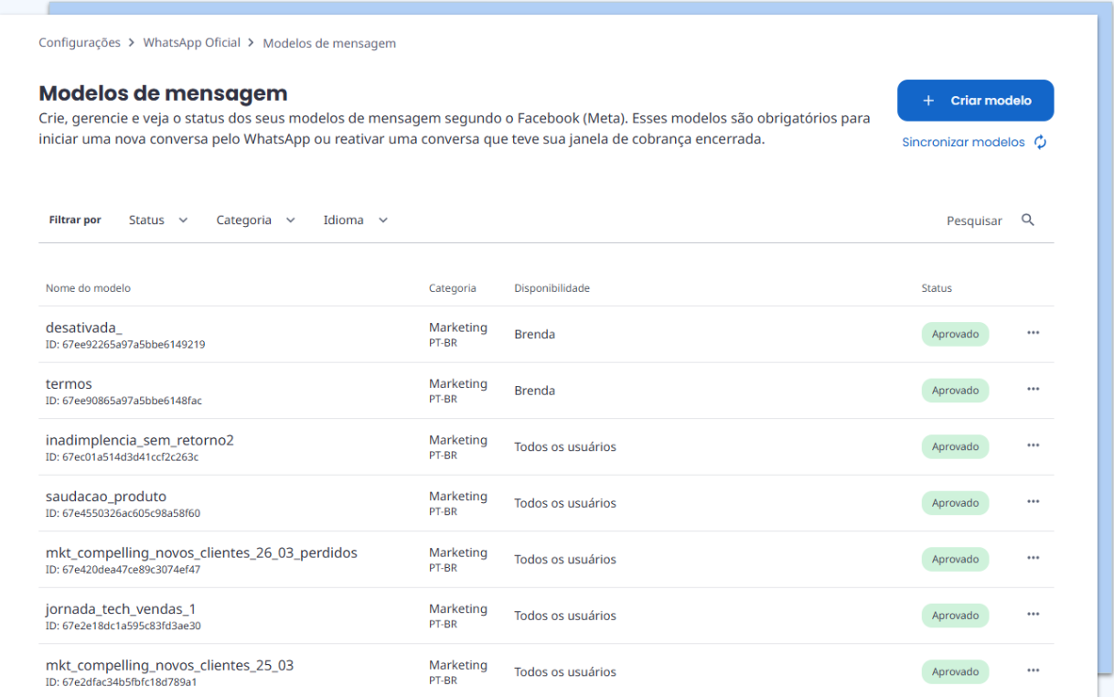 Facilitamos o uso de mensagens no WhatsApp Business API. Antes, era necessário que todos os Gerenciadores de Negócio aprovassem um template — agora, basta que um deles aprove para que o template possa ser utilizado naquele canal, mesmo que os outros ainda estejam analisando.
