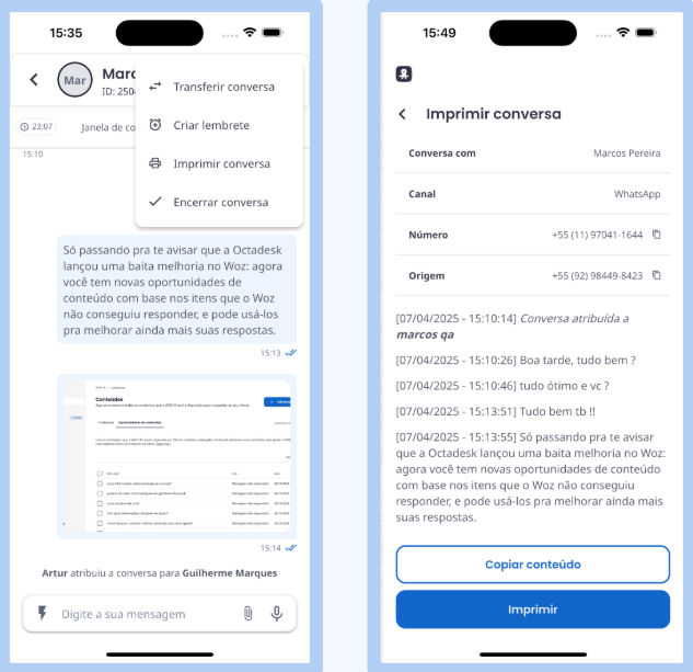 Agora é possível imprimir uma conversa diretamente pelo app, facilitando o compartilhamento de informações sempre que necessário.