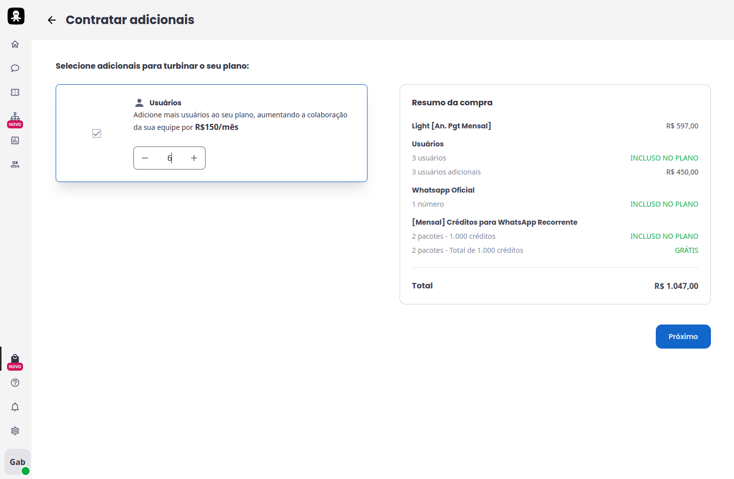 - Mais controle, menos impacto: com essa atualização, você também evita ser impedido de realizar disparos em massa, enviar mensagens via API do WhatsApp ou iniciar novas conversas por falta de créditos. Tudo isso para que você tenha mais previsibilidade e gestão do seu saldo.