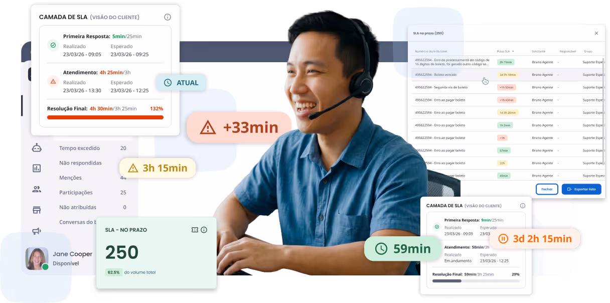 O agente resolve até 40% das demandas instantaneamente e aciona humanos apenas quando necessário. Eleve sua operação, reduza carga do time e entregue respostas com qualidade.